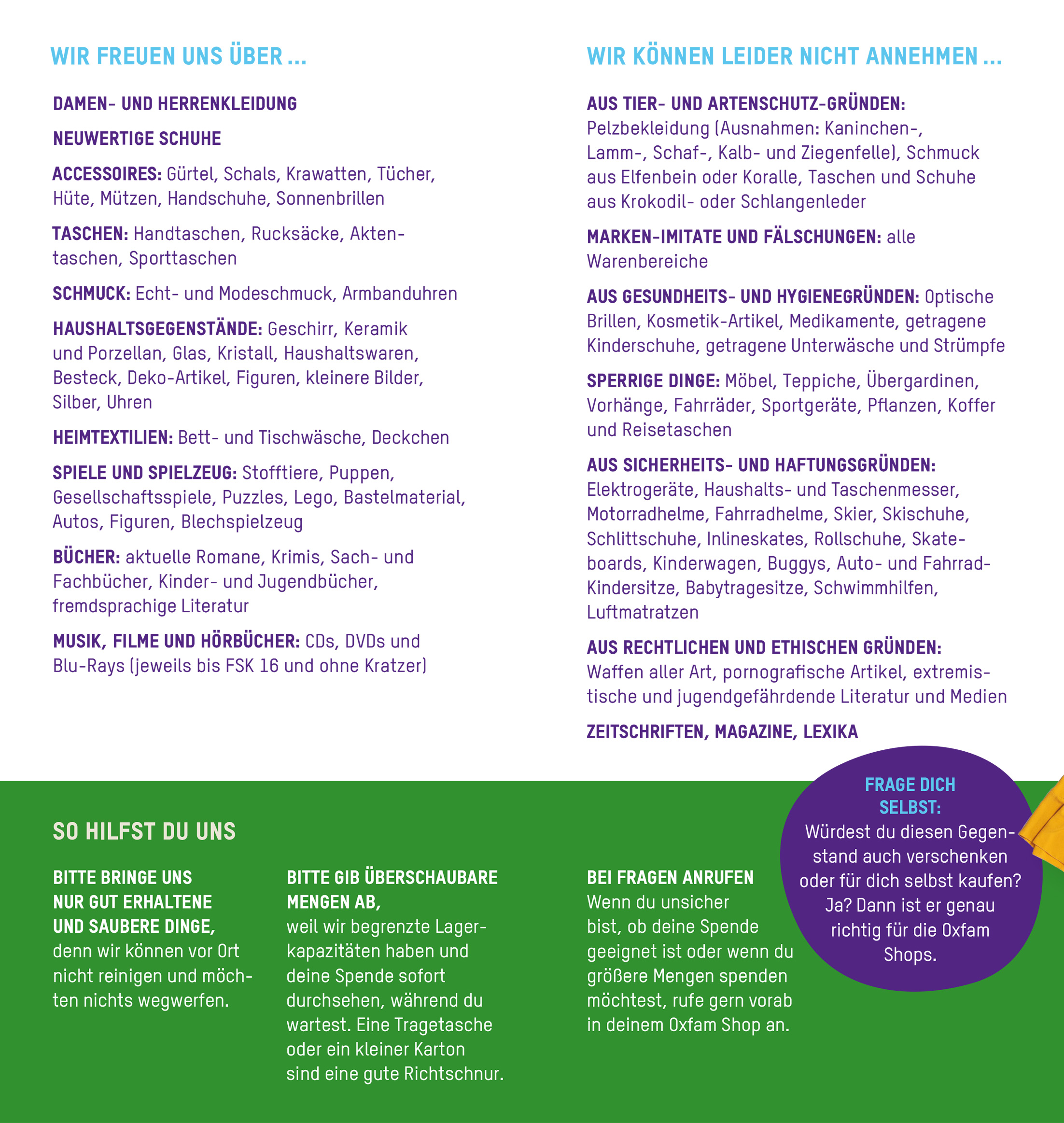 Eine Übersicht der Sachen, die wir annehmen und nicht annehmen, findest du hier.