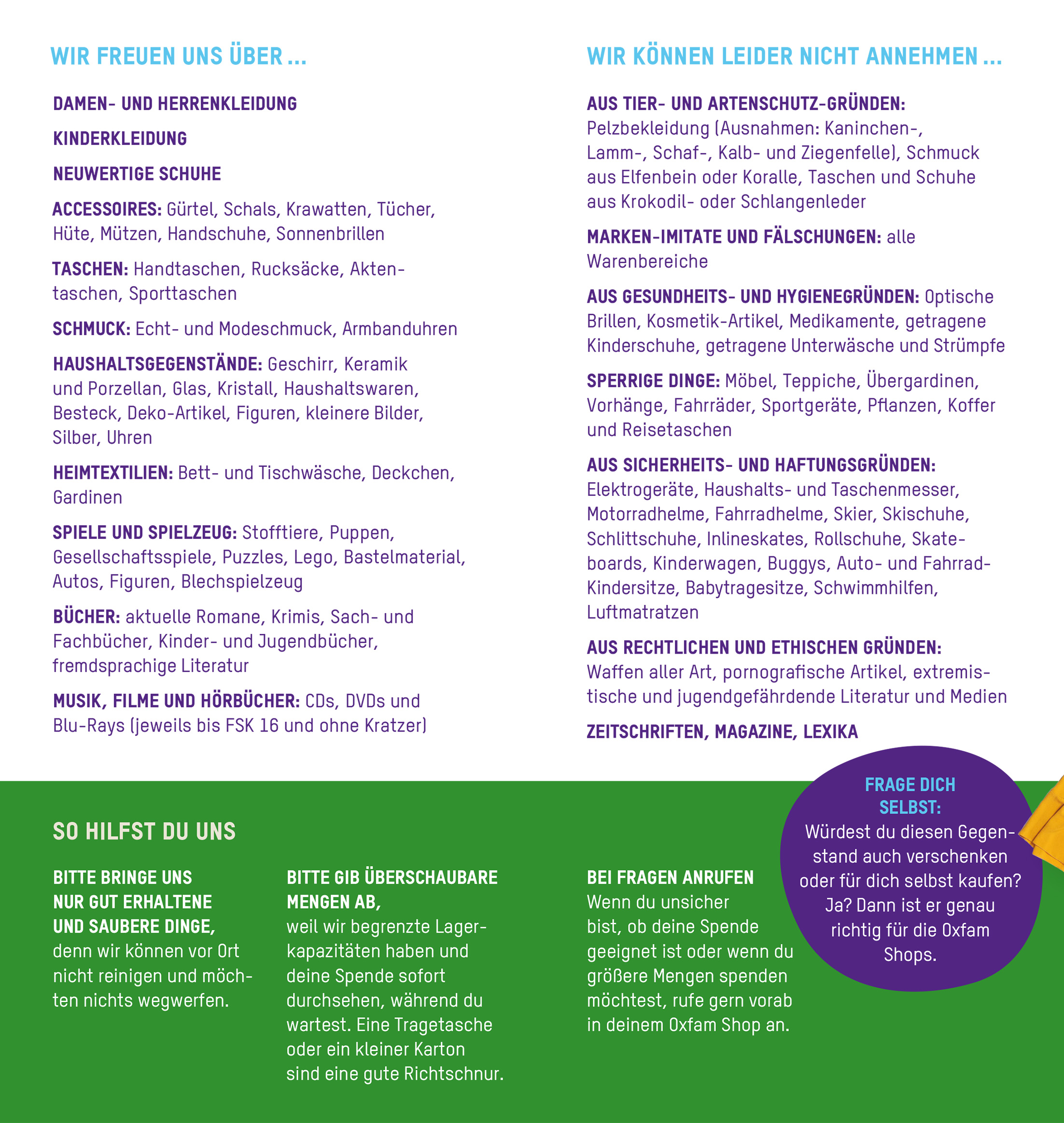 Eine Übersicht der Sachen, die wir annehmen und nicht annehmen, findest du hier.